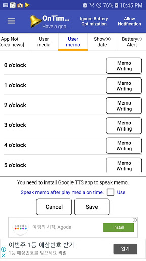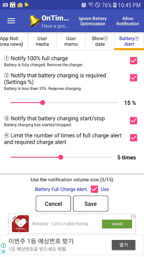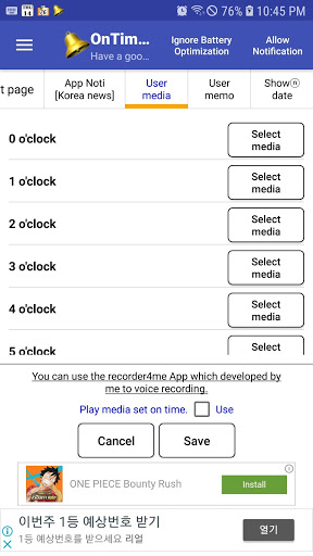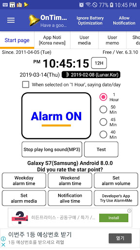 - Her Saatte (Zamanında, Her 50 Dakika, Her 50 Dakika) 45 dakika, her 40 dakikada bir, her 30 dakikada bir), belirlenmiş bir alarm, mp3 veya speaking notu veya bir titreşim oynayın.