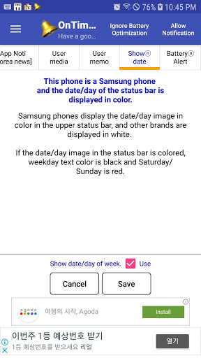 - Durum çubuğunda haftanın tarihini ve gününü görüntüleyin, Nota, Destek Rezervasyonu ve Yürütme. Tablo saatinin, pil uyarısı, bugünün serveti.