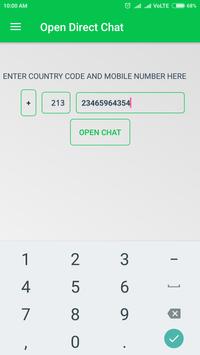 Open chat on whatsapp easily and it's very simple to have on our device it's really cool application to chat direct without saving contact.