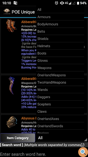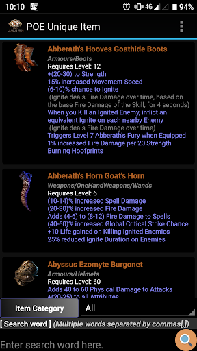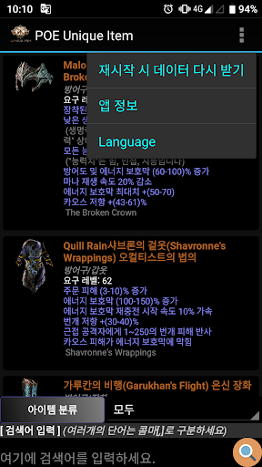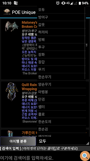 패스오브엑자일 (Path of Exile) 의 유니크 아이템의 정보만 모아 놓은 앱입니다.
