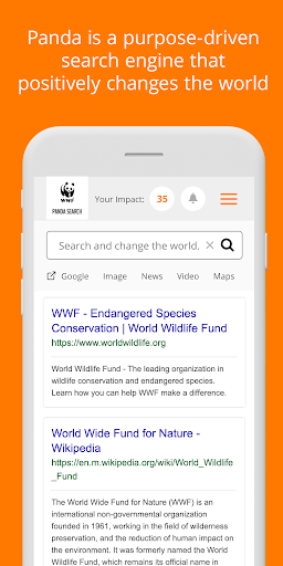 WWF'yi arayın ve destekleyin Panda, dünyayı olumlu yönde değiştiren amaçlı bir arama motorudur.Arama sorgularınız gelir elde eder.Bunlarla WWF projelerini ve kampanyaları destekliyorsunuz. - Bir işaret belirleyin ve Panda'yı şimdi arayın!