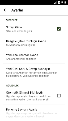 ✓ Özelleştirilebilir gizli soru ve en güvenli Ana PIN kurtarma için gizli yanıt