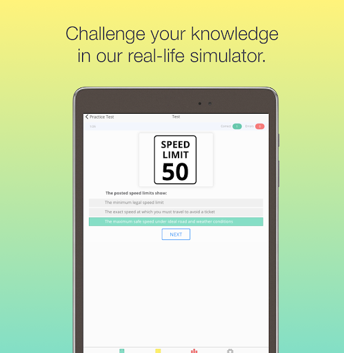 The user-friendly interface provides super easy navigation inside the application, which speeds up your learning progress. Also, you can practice for free online on our website https://Driver-Start.com.