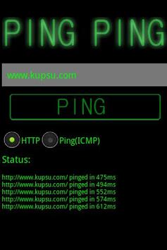 Very simple ping app to check a host's connection using two JAVA methods, isReachable from Inet and a HTTP status 200 check. Displays time taken for full round trip and initiates 5 attempts. Simple green high contrast design.