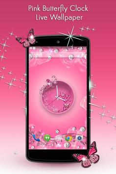Pink Butterfly Clock Live Wallpaper