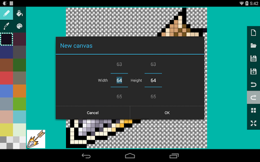 - when using the pen or eraser, tapping again on a single pixel you've changed to undo it to its previous color