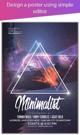 Yani , bu Poster Creator uygulaması promosyon posterler, reklam, ilan etmek, yanıtlar, fotoğraflar, davetiye, doğum günü, anneler günü, babalar günü, düğün, nişan, aşk selamlar, teşekkür ederim parti için tanıtımlar tasarımı oluşturmak için çözüm sağlar vb. İnanılmaz arka planlar, doku, efektler, yazı tipleri ve etiket de poster üzerindeki galeri veya kameradan görüntüyü ayarlayın.