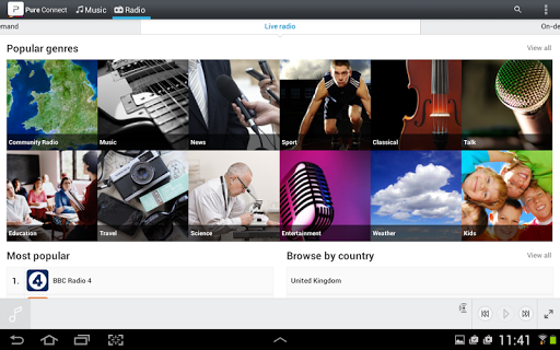 Pure Connect gives you free access to thousands of internet radio stations, on-demand radio shows and podcasts, as well as all your own network and local digital music. You can also use it as a convenient remote control for Pure Jongo wireless multiroom speakers.