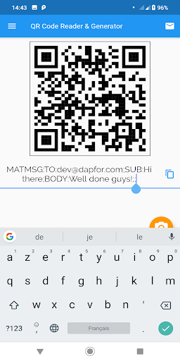 Biz harika bir seçenek dahil edildi Bir QR kodu oluşturun ve gerçek zamanlı olarak görüntüleyin. Metin geçerli bir URL / SMS / telefon numarasını veya e-posta adresini temsil ederse, özel bir uygulamayı da açabilirsiniz.