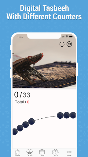 Bu QiBla yönü uygulaması, Müslümanların dualardan sonra Dhikar ve Tasbeeh'i sunmasına yardımcı olmak için TASBEEH sayacı da var. TASBEEH, 33 sayım ve 99 sayımdan oluşur ve bu da her Müslüman'ın akıllı telefonu bir dijital Tasbeeh olarak kullanmasını kolaylaştıran 99 sayıdan oluşur.