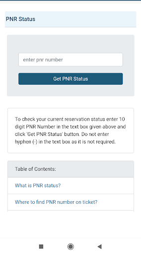 App for travellers using railways for taking holiday vacation trips, tours, and daily commute. train-running related and real-time status queries for all trains of India.