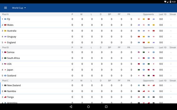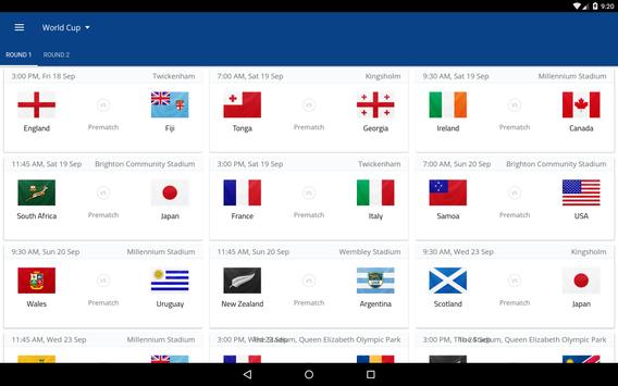 Rugby WC 2015 Live is the ultimate way to follow the Rugby World Cup with lightning fast live scores, comprehensive news, video highlights and in-depth stats, delivered in a stunning design.