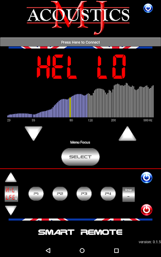 Akıllı Kumanda, bir veya daha fazla MJ alt bas sistemleri ile iletişim kurma yeteneğini sunar. - Uygulamanın, Subwoofer'ın kullandığı ayarları görüntülemek için uygulamanın yerleştirilmesi. Dokunmatik kontrollü ekran aracılığıyla yapılan değişiklikler anında çalışıyor ve müzik çalıyor gibi gerçek zamanlı olarak sinemada yapılabilir. Alt bas sisteminizi ayarlamak ve ince ayarlamak için fantastik bir yol HIFI entegrasyonu içindir.