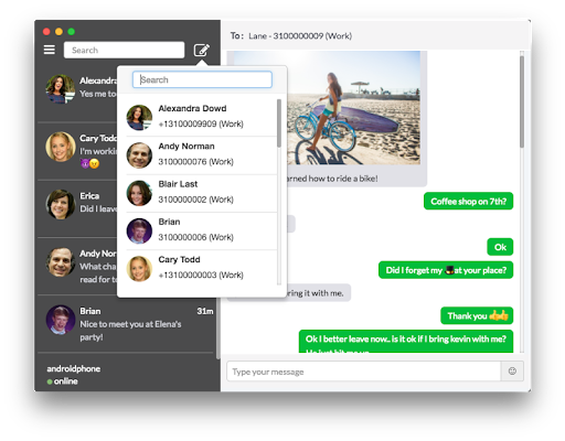 ★ No need to rely on browser extensions. Use DeskSMS app on your computer to send & receive text messages through your Android phone #.