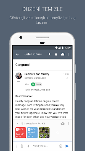 Tonlarca özellik barındıran bu modern e-posta uygulaması, gelişmiş mobil teknolojiler ve yeterlilikler ile doludur: