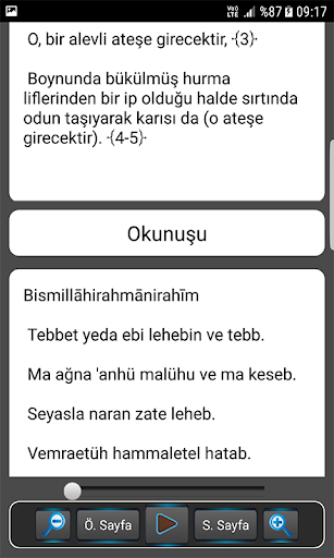 Ayrıca uygulamamıza monte edilmiş müzik player sayesinde okunan sureleri ileri geri alabilir, sayaçlar sayesinde sürelerini kontrol edebilir, repeat tuşuyla ezber yapmak için defalarca dinleyebilirsiniz.