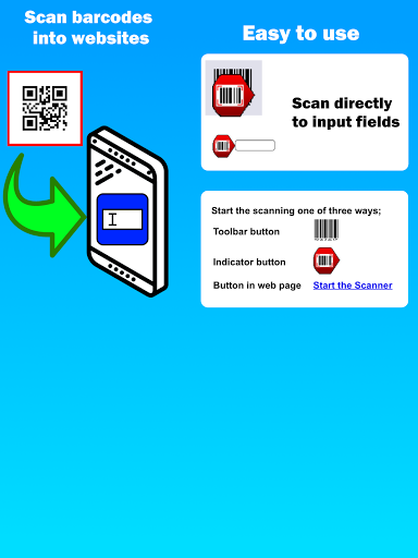 Web'e Tarama, Android cihaz kullanıcısına temel bir web tarayıcısı ve kullanıcının göz attığı web sayfalarında web alanlarında tarama yeteneği sağlar.Harici donanıma gerek yoktur.Web taraması, barkodları taramak için Android cihazınızdaki kamera tarayıcıyı kullanır, böylece kendi cihazınızı (BYOD) getirmek için mükemmel bir seçenektir.