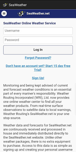 Abone olamayacak hiçbir yükümlülüğü altında 15 günlük ücretsiz Premium Seaweather (balıkçılık planlayıcısına erişim dahil) teklif veriyoruz. İlgileniyorsa, ücretsiz deneme simgesine dokunun ve hesabınızı uygun şekilde ayarlayın.