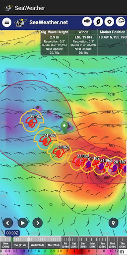 Hava durumu verileri ve tahminler sürekli olarak alınır ve evde işlenir ve hemen web sitesine ve mobil uygulamaya dağıtılır. Parmağınızın ucundaki harita üzerinde tam kontrolünüz var. Haritayı tüm dünyanın her yerine kaydırabilir ve yakınlaştırıp uzaklaştırabilirsiniz. Tahmin haritaları, temel aboneler için 2 gün ve Premium aboneler için 7.5 gün boyunca grafik tahminler sağlar. Angler'in temel ve premium abonelerinin balıkçılık planlayıcısına ek bir erişime sahip olacak. Abonelikler hakkında daha fazla bilgi için www.seaweather.net adresini ziyaret edin.