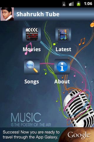 Watch Shahrukh khan39;s upcoming movie Jab Tak Hai Jaan latest updatesnew teaser, Theatrical Trailer,Official song,release date,etcnow in your android mobile and also all Shahrukh khan39;s high quality Hindi Movie Video SongsWatch All Shahrukh khan39;s High Quality Hindi Movie Video Songs for free..This application will play Shahrukh39;s High Quality Hindi Movie Video Songs in your Android Smart phones..The application is a dedicated to all Shahrukh khan fans and music lovers. It provides an user friendly approach to surf through the exhaustive list of films using the search option. The search option allows the user to know more about the film like the year of release, sound tracks, singers . The application also updates the recent events .This music library is dedicated to all Shahrukh khan fans. Note: New songs to be added frequently, look out for frequent updates App requires 2G3GWiFi connection to Watch Video Songs.Disclaimer: The content provided in this app is hosted by YouTube and is available in public domain. We do not upload any videos to YouTube. This app is just an organised way to browse and view these YouTube Videos.TAGS :Sharukh khan movie,Sharukhan video songs,Shahrukh khan movie,Shahrukhan video songs,Jab Tak Hai Jaan movie trailer,Jab Tak Hai Jaan songs
