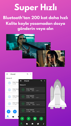 ShareE, Heryerde, İnternet olmadan ücretsiz bir şekilde Uygulamalarınızı, Oyunlarınızı, Dosyalarınızı, Fotoğraflarınızı, Videoalarınızı Müziklerinizi, Ses dosyalarınızı kısacası telefonunuzda bulunanan her şeyi diğer bir Android cihaz ile paylaşmanıza olanak sağlar. Ayrıca tüm dosyalarınız bilgisayarınıza transfer edebilirsiniz. Çeşitli format türleri arasından seçim yapabilirsiniz. ShareE tüm dosya formatlarını destekler (png,jpg,pdf,mp4,mp3,wav,ogg vs.), Güvenli bir şekilde fotoğraf paylaşımı, video paylaşımı veya birden fazla dosya gönderebilirsin. ShareE Çok hızlıdır diğer uygulamalara göre daha güvenlidir. ShareE her telefonda yüklü olması gereken bir uygulamadır çünkü hayatınızı kolaylaştırır.