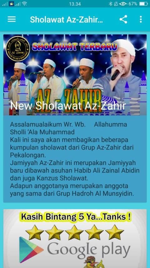 With this app you can listen to and enjoy sholawat Strains Recent Songs From Group Tambourine Az-Zahir Pekalongan.