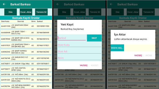 Kolay Sayım ile mevcut stoklarınızı, barkod okuyucu kamera sayesinde hızlı bir şekilde sayabilir ve sayımınızı ".xls" dosyası olarak paylaşabilirsiniz.