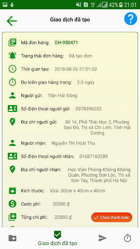 * Thêm lịch sử giao dịch khi gửi, thuê, nhận hàng
