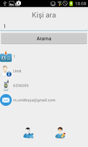 ✔ Rehber üzerinde arama ve email gönderebilme