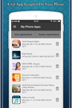 This App will display all the details of your device like mode of Internet Connection, Android version, used and unused memory space. You can also see the list of all installed applications in your device. You can see the app info screen of any application and can directly uninstall the app.