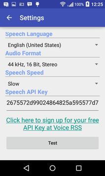 SpeakSMS requires you to sign up a free API key for the speech.