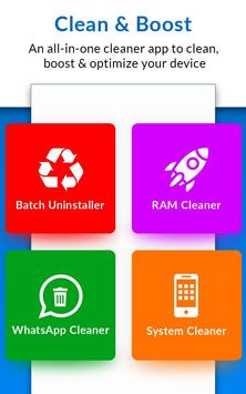 a phone clean and booster app that boosts your RAM, cleans junk files and lets you bulk uninstall your unused apps with one touch. This app acts as a personal assistant and notifies you about the health of your device regularly.