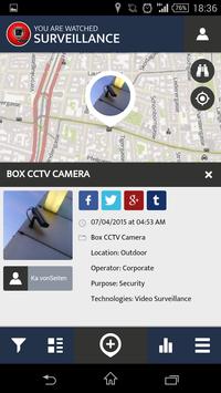 The numbers of surveillance cameras in our streets are exploding, we are watched everywhere. Advanced technologies like face recognition hang like damocles' sword above out heads, giving authorities and corporations immense power. We don't want to this world to become a distopian nightmare, so we spot back. Locate CCTV security cameras or other surveillance equipment in public space and put it on the map - just to be known. What is not hidden anymore can be seen by many.
