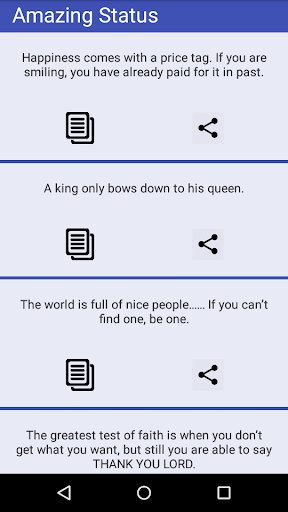 Status and Quotes now with more and more categories and best text status messages for you to express in more different and easiest way ever .