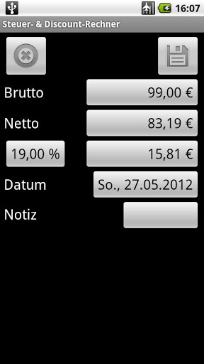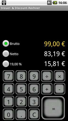 Calculate gross from net and net from grossA positive percentage is added to the net value, a negative percentage is subtracted from the gross value. To enter a negative percentage tap the 39;39; key afterwards, e.g. 20