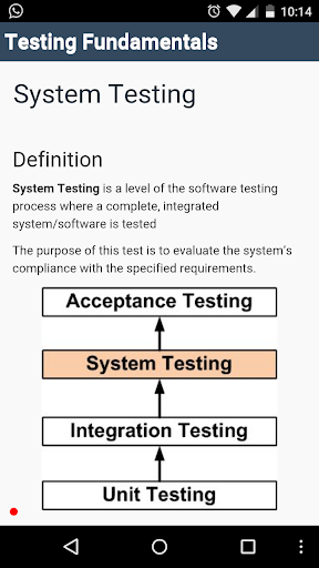 This app provides information about software testing to those who are new to this field. The information provided can be easily understood by anyone.