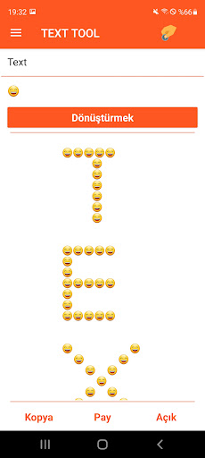 Bir Metin Tekrarlayıcı uygulaması, iletiler için sonsuz miktarda aynı metin oluşturabilir ve ayrıca basit metni emojiden oluşturulan metne dönüştürebilir. Bu uygulamada başka birçok fonksiyon daha vardır, uygulamayı yükleyin ve tüm bu özellikleri deneyin!