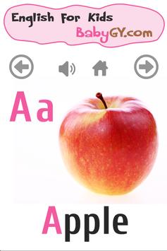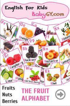 Flash cards with english letters, photographs and names of fruits. Suitable for those who learn English language.