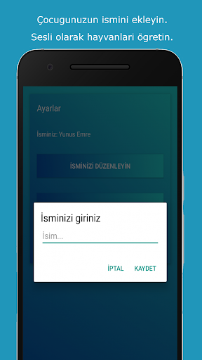 *Çocuğunuzun adını uygulamaya ekleyin. Konuşarak hayvanları öğretin.