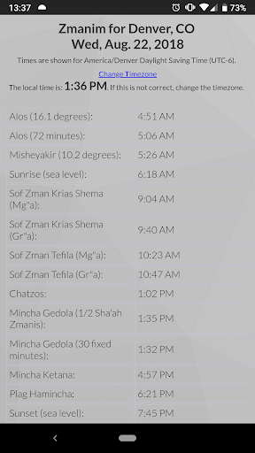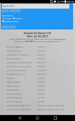 - The zmanim calculator will now automatically show zmanim for your previously viewed location