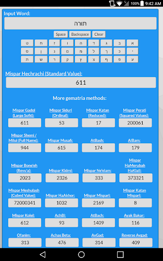 - Calculate the Hebrew gematria of any word using 25 different methods of calculating gematria.