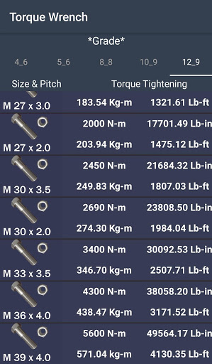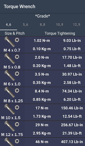 Tork anahtarı size vidaları sıkılmanın önerilen anlarını verir. Uygulama, günlük kullanımda bulunabilecek vidaların büyük çoğunluğunu kapsar. kullanımı çok kolay