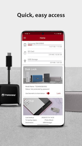 • Portable SSD / JetFlash / OTG kartındaki dosyaları ara / sıralamaOkuyucu ve Android Cihazı Bellek