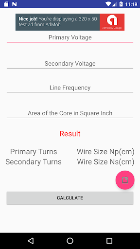 An app for designing an electrical transformer also called silicon steel transformer.Given the primary voltage, secondary voltage, the line frequency(60Hz or 50Hz) and cross sectional area of the core.The app will output the number of turns for primary and secondary and their respective sizes of the wire.