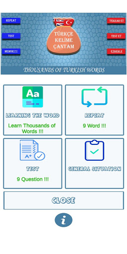 Uygulama, size Türkçe kelimeleri tekrar ve testlerle öğretmek istiyor.Basit tasarımı ile tamamen amaca hizmet eder.Uygulama, binlerce Türkçe kelimeyi tekrar ve testlerle pratik olarak ezberleme konusunda iddialı.
