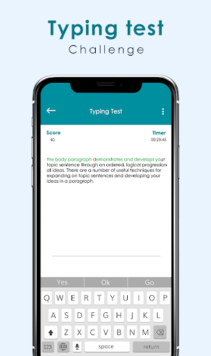 - Score Board - App shows top scorer around the world. Take part in typing test challenge and show your typing speed to all.
