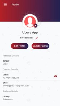 ULove app is a lovers register. If two Users register the same partner unaware, ULove will connect them so that they can chat privately. In addition, ULove can be used to check whether a potential partner is truly single.