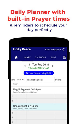 Unity Peace for Muslims is a FREE APP with no distractions. The app facilitates awareness about prayer timings and beyond. In addition to it, the app has many interesting and unique features like Qibla Finder, Quran with over 50 translations, and audio recitations. It also includes a daily planner, Islamic calendar, Islamic blogs and several other features otherwise missing in normal prayer apps.
