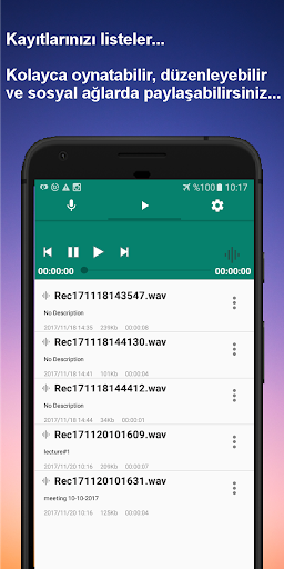 Ses kaydedici kolay ve pratik kullanımı ile toplantılarınızı, derslerinizi, eğitimlerinizi, iş görüşmelerinizi, müziklerinizi, anılarınızı dijital ortamda saklayabilirsiniz. Ses kaydedici içerisinde bulunan müzik çalar özelliği ile kaydettiğiniz sesleri ses kaydedici programı ile kolayca dinleyebilirsiniz. Sizler için hazırladığımız en güncel ses kaydedici proğramı.