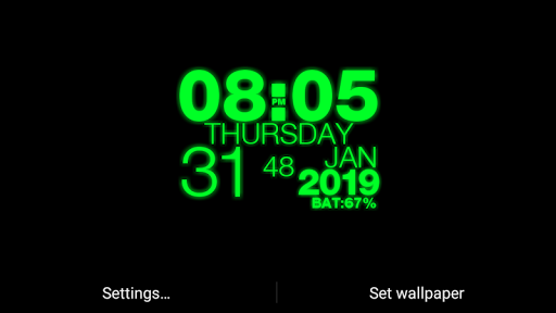 Duvar Kağıdı Saati - DiGi Saat LWP Başvuru veya Canlı Duvar Kağıdı Olarak Kırtaçlı Zaman, Tarih, Haftanın Günü, Pil Yüzdesi, AM-PM Oluşturma Saniyesiydi ve vb. Ayrıca duvar kağıdı saatinizi özelleştirebilirsiniz - DIGI SAAT LWP veya DIGI SAAT Live Wallpaper ile arka plan rengini, saniye, am-pm formatını, kızdırma etkisi, neon etkisi, tarihi ve ayrıca saat boyutunu ve ayrıca göstergesini gösteremezsiniz. Ekranda saat alanı.
